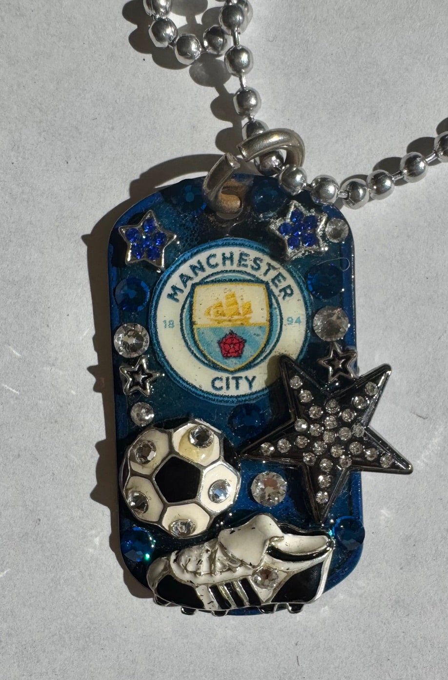 Each one of a kind P.J. Art Tag is uniquely handcrafted and designed using military grade stainless steel dog tags. Every creation is a three-dimensional work of art created using swarovski crystals, nickel free metals and paints, as well as hand casted molded crystal pieces.